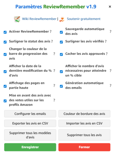 ReviewRemember vous permet de sauvegarder vos avis, appliquer un modèle automatique, mettre en couleurs vos dates d'avis et leurs status …