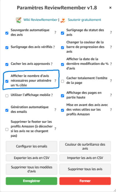 Affiche le nombre d'avis qu'il va être nécessaire de faire pour atteindre le % défini. Plus besoin de faire des calculs. Sert à vous motiver.