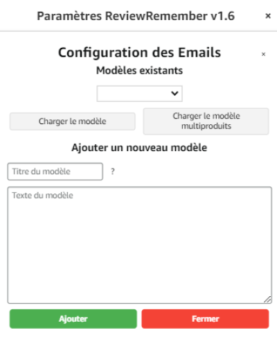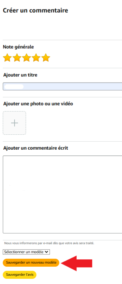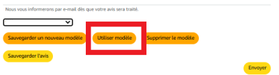 Une fois plusieurs avis sauvegardés un menu déroulant s'affiche qui vous permet de choisir le modèle enregistré de votre choix.