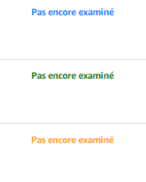 Change la couleur du “Statut du commentaire” dans vos avis “Vérifiées” en fonction de leur statut actuel : validé : en vert, en attente : en orange, et refusé : en rouge. Vous trouverez également une ligne en Bleu pour les articles dont le statut est Vous avez commenté ce produit ( en général, il s'agit de produits indisponibles ou retirés via le Service Clientèle )