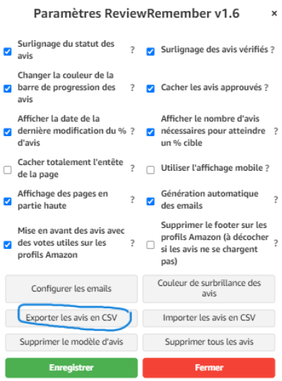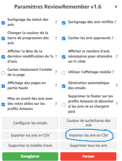 Et inversement avec importer les avis en CSV
