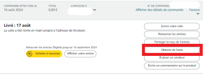 • Vous n’avez pas reçu le bon article