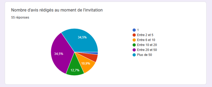 - Le nombre d’avis rédigés au moment de l’invitation est très variable et ne semble pas influer. Cependant, il est évident que plus vous rédigez d’avis, plus vous avez de chances d’être choisi.